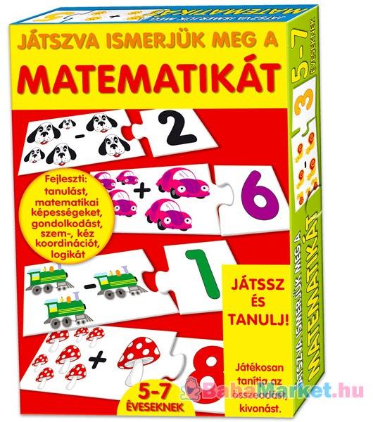 Játssz és tanulj!Játékosan ismerteti meg a gyerekekkel a matematikát, 5-7 éves kor között. A játék lényege összepárosítani az összeadás és kivonás példákat kártyákkal, amelyeken az adott példa eredménye látható, az egyes kártyák illeszkednek egymáshoz, mint a puzzle kirakós játékban. Összesen 32 darab puzzle található a csomagolásban, amelyek összepárosíthat