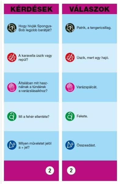 Kötetenként száz érdekes kérdés és válasz várja a gyerekeket ezeken a legyezőforma kiadványokon. A kérdések többnyire az életkoruknak megfelelő általános műveltségre építenek, de még a felnőtteknek is okozhatnak meglepetéseket… Utazáshoz, kirándulásokhoz ideális méretű, praktikus fejlesztő kiadvány.