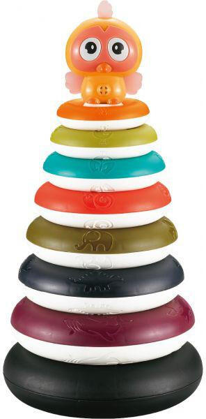 Ez az állat mintás Montessori gyűrűpiramis biztosan felkelti minden kisgyermek érdeklődését, miközben a játék közben fejlődik is. A színes műanyag karikák mindegyikén egy-egy állat lenyomata található, valamint hangot is kiad. A játék célja, hogy a picik a megfelelő sorrendben rakják a rúdra az elemeket. A torony tetejére egy hangot adó madárkát is ráhelyezhetnek, am