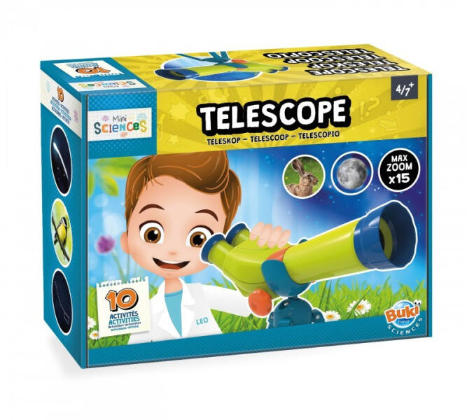Fedezd fel nappal az állatokat, este pedig a csillagokat ezzel a speciális állvánnyal ellátott távcsővel!A távcsővel 10 tevékenységet is kipróbálhatsz, melyeket lépésről-lépésre magyaráz el az útmutató füzet. Tartalma: teleszkóp, melynek átmérője 35 mm, 30 cm-es állvánnyal, színesen illusztrált útmutató, kísérleti lapok. A szülőknek szóló füzet lehetővé tes