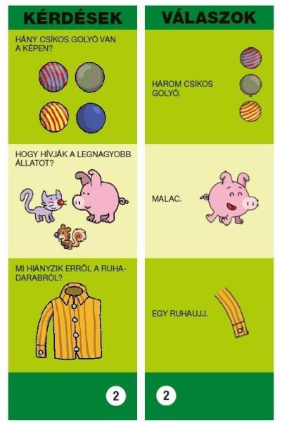 Mit kell tudni a játékról? Agymenők kérdezz-felelek kártya 4-5 éveseknek Gondolkodtató és szórakoztató feladatok gyűjteménye, mely tartalmas időtöltést biztosít otthon, utazás közben a buszon, vonaton vagy éppen az orvosi rendelőben. A színes képekkel illusztrált logikai, figyelemfejlesztő és ismeretbővítő kérdések élvezetes perceket szereznek gyereknek és szülőn