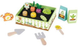 A csomagban található továbbá egy gereblye, egy kertészlapát egy locsolókanna és két terményjelző is, amivel a kicsik megjelölhetik, hogy mit ültettek az adott sorba. A termék fából készült, nem tartalmaz toxikus anyagokat. Csomagolás mérete: 33 x 22 x 2 cm