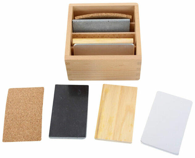Az Montessori hőlemezek segít kifejleszteni a gyermekeknél azt a képességet, hogy érintéssel meg tudják különböztetni az eltérő hővezető képességgel rendelkező anyagokat. A faláda 4 fakkra van osztva, és mindegyikben egy pár azonos méretű és formájú lemezecske található, amelyek más-más anyagból készültek – fából, parafából, üvegből, és fémből.