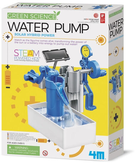 Ez a vízszivattyú napenergiával képes mozgatni a vizet, amikor süt a nap. Akkumulátorról is működtethető, ha nincs napfény. Nézze meg, ahogy a kis kék ember mozog és pumpálja a vizet. Remek napelemes hibrid elektromos játék!Tartalma: ház x 1, napelem tartó x 1, napelem x 1, tartókar x 1, csavarok x 3, kapocsfedelek x 3, akkumulátortartó x 1, akkumulátor fedele x 1, vezetékp