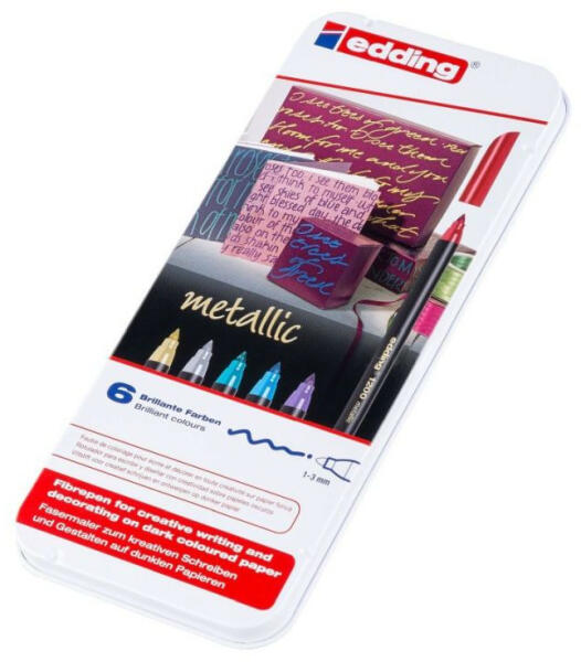 Edding rostirón színezéshez, rajzoláshoz, díszítéshez, kiváló minőségben! Rostirón, vízbázisú festékkel töltve, rajzolásra, színezésre. A metál színek kiválóan alkalmasak sötét színű kartonpapír dekorálására is. Vonalvastagság: 1-3 mm Az Edding Németország piacvezető rostirón márkája, amely változatosságot és szakértelmet képvisel. Markerek széles vála
