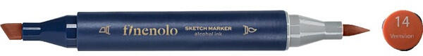 Deli Finenolo 14 - Vermilion kétvégű permanent ART marker Kétvégű, alkoholbázisú art marker. Ez a marker minden igényt kielégít. Nemcsak a részletek vékony ecsettel való megrajzolására, hanem a széles hegy színezésére és kiemelésre is. Az ecsethegy 1–4 mm, a vágott hegy 1-7 mm széles és kopásálló. Az erősen pigmentált tinta gyorsan szárad, és egyenletes színt ad