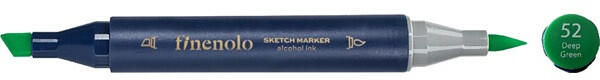 Deli Finenolo 52 - Deep Green kétvégű permanent ART marker Kétvégű, alkoholbázisú art marker. Ez a marker minden igényt kielégít. Nemcsak a részletek vékony ecsettel való megrajzolására, hanem a széles hegy színezésére és kiemelésre is. Az ecsethegy 1–4 mm, a vágott hegy 1-7 mm széles és kopásálló. Az erősen pigmentált tinta gyorsan szárad, és egyenletes színt ad