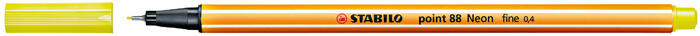 Stabilo Point 88 tűfilc Neon sárga- Egy STABILO klasszikus a színes álmok megvalósításához- Számos európai ország első számú tűfilce, kiváló ár-teljesítmény aránnyal- Fémfoglalatú hegye kiválóan alkalmas vonalzó és sablon használatához- Hosszú nyitva tarthatósági idő- Légáteresztő szeleppel ellátott kupak- Vízbázisú tinta- Vonalvastagság: 0,4 mm- Szín: neo