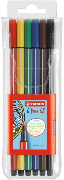Stabilo Pen 68 6db-os vegyes színű rostirón készlet - STABILO Pen 68 filctoll, 6 db-os készlet - Kiváló minőségű, intenzív színű filctoll - Nyomásbiztos, M vonalvastagságú hegy - Illatsemleges, vízbázisú tinta - Légáteresztő szeleppel ellátott kupak - Hosszú nyitvatarthatósági idő: 24 órán keresztül sem szárad ki kupak nélkül
