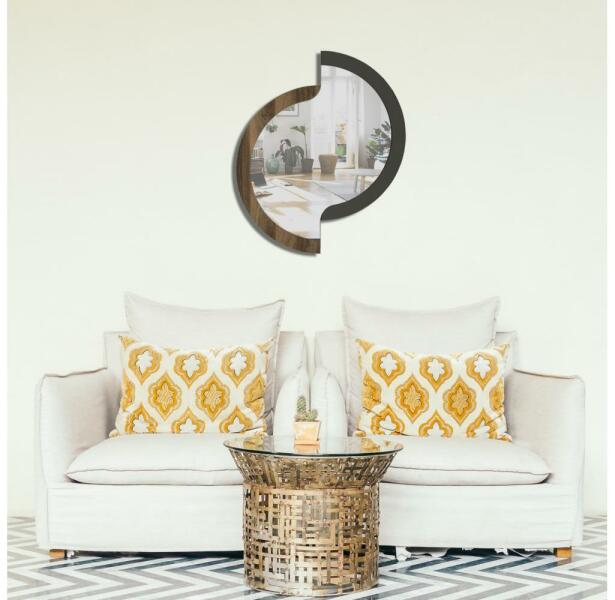 Fali tükör természetes dizájnnal. Egyszerű, modern stílusának köszönhetően bármilyen otthonba illik. Laminált forgácslapból készült. Nagyszerű előszobába vagy hálószobába. Tükör vastagsága: 1,5 cm. Fa mintázata: diófa.
