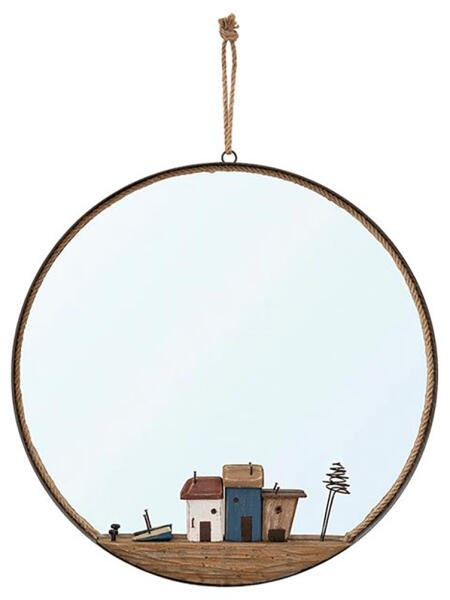 Tükör Kikötővel: Egyedi Vintage Érintés MÉRETE: átmérő 47 × 3 cm ANYAGA: fa, fém, üveg CSOMAGOLÁS: kartondoboz Fedezze fel a Tükör Kikötővel termékünk egyediségét, amely stílusos kiegészítője lehet otthonának vagy munkahelyének. A 47 cm átmérőjű, fa, fém és üveg anyagokból készült tükör vintage hangulatot áraszt, miközben praktikus használatot is kínál.