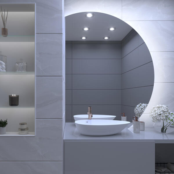 Luxus dizájner LED-es tükör , amely nem csak szépségének és praktikumának köszönhetően varázsolja új térré a fürdőszobáját, hanem különösen a több mint 7 lehetséges kiegészítőnek köszönhetően. : Opcionális LED-es tükörvilágításs Érintésve zérlés Bluetooth hangszóró Tükör fűtés Meteorológiai állomás WIFI-vel Kozmetikai nagyító tükör Üveg polc