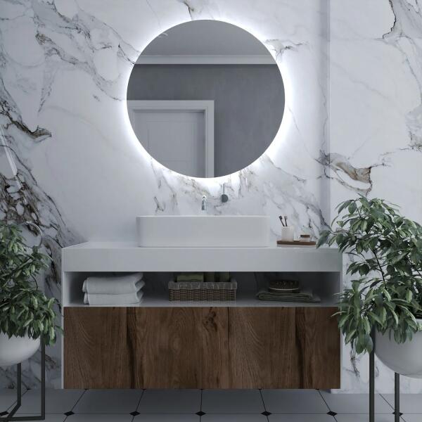 E1 kerek csiszolt tükör LED világítással - 90x90 cm, extra fizetéses kiegészítők, most kedvezménnyel és ingyenes kiszállítással.