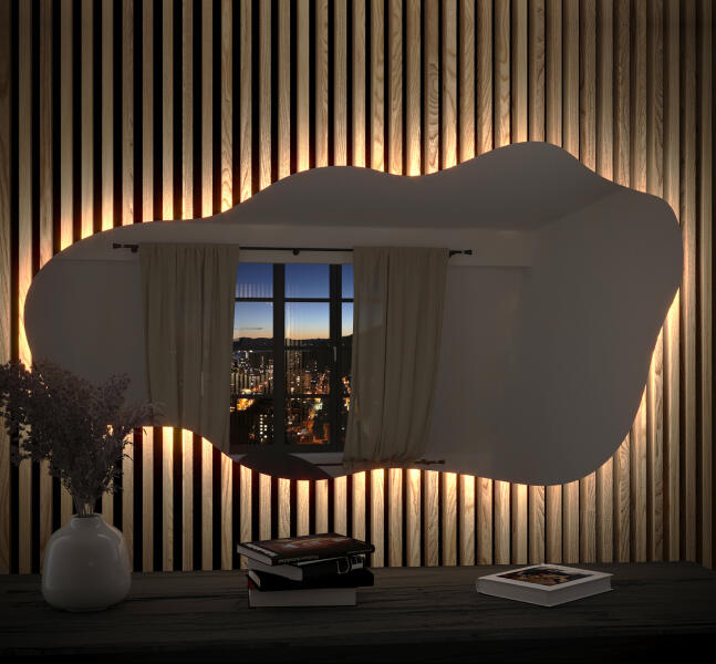 Luxus dizájner LED-es tükör , amely nem csak szépségének és praktikumának köszönhetően varázsolja új térré a fürdőszobáját, hanem különösen a több mint 7 lehetséges kiegészítőnek köszönhetően. : Opcionális LED-es tükörvilágításs Érintésve zérlés Bluetooth hangszóró Tükör fűtés Meteorológiai állomás WIFI-vel Kozmetikai nagyító tükör Üveg polc