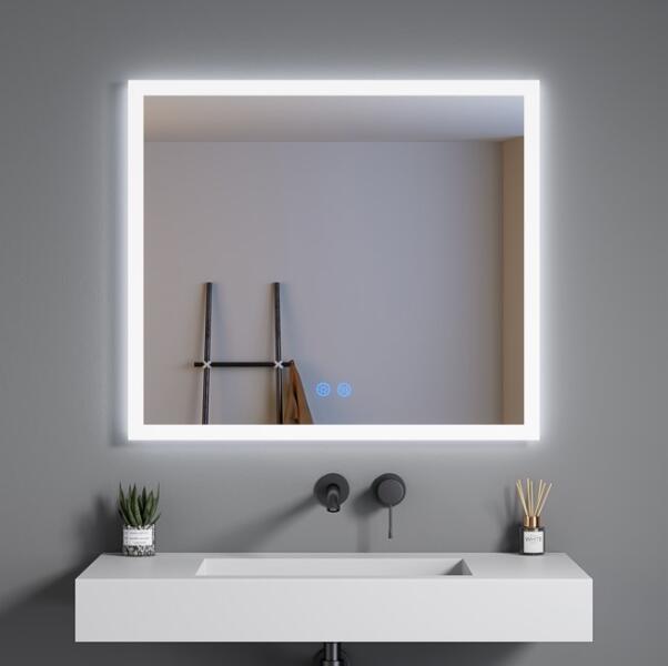 Méret: 80x3,5x70 cm|Fény körös-körül a felületen|Egyszínű led lámpa: 6500K, 2835LED|Szabályozható fényerő (a fény sötétről világosra változhat)|5 mm vastag rézmentes üvegtükör|Érintőérzékelő kapcsoló: világítás és páramentesítő vezérlés|A meghajtó AC220-240V|LED lámpa és meghajtó CE és IP44 minősítéssel|Páramentesítő funkció|Alumínium ház hátul