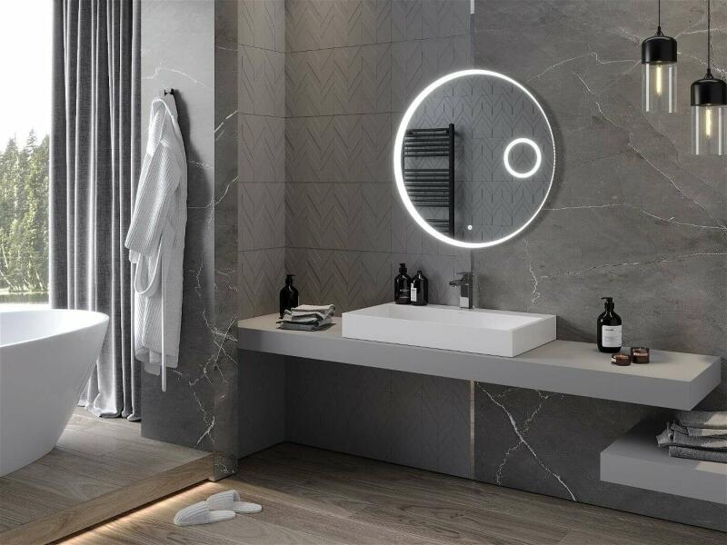 E1 kerek csiszolt tükör LED világítással - 75x75 cm, extra fizetéses kiegészítők, most kedvezménnyel és ingyenes kiszállítással.