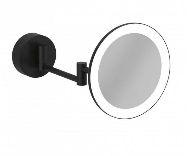 VELA R fali sminktükör, matt fekete KLUDI-VELA R LED kozmetikai tükör falra szerelhető kivitel tükör anyaga: üveg keret anyaga: fém dupla csuklós karon forgatható 2 változtatható színhőmérséklet 3000K vagy 5700K billenőkapcsoló a tükör hátsó falán nagyítás: 3x LED világítás 4,5W bemeneti feszültség: 220-240V / AC 50-60Hz kimeneti feszültség: 12V védettség IP45 CE