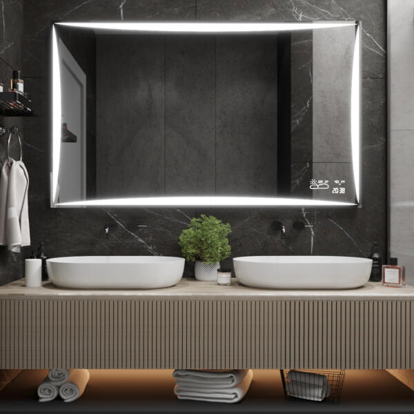 Luxus dizájner LED-es tükör , amely nem csak szépségének és praktikumának köszönhetően varázsolja új térré a fürdőszobáját, hanem különösen a több mint 7 lehetséges kiegészítőnek köszönhetően. : Opcionális LED-es tükörvilágításs Érintésve zérlés Bluetooth hangszóró Tükör fűtés Meteorológiai állomás WIFI-vel Kozmetikai nagyító tükör Üveg polc