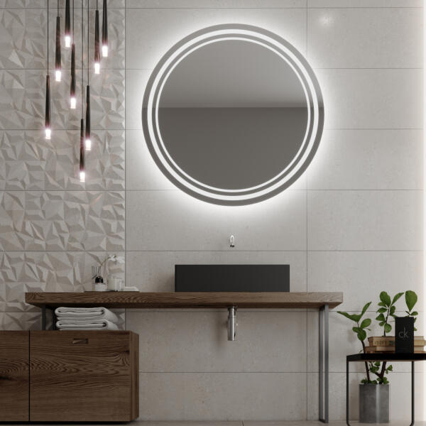 Luxus dizájner LED-es tükör , amely nem csak szépségének és praktikumának köszönhetően varázsolja új térré a fürdőszobáját, hanem különösen a több mint 7 lehetséges kiegészítőnek köszönhetően. : Opcionális LED-es tükörvilágításs Érintésve zérlés Bluetooth hangszóró Tükör fűtés Meteorológiai állomás WIFI-vel Kozmetikai nagyító tükör Üveg polc