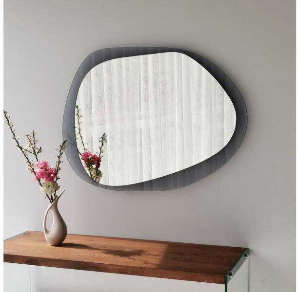 Design fali tükör. Egyszerű, modern stílusának köszönhetően bármilyen otthonba illik. Hevített üvegből készült.
