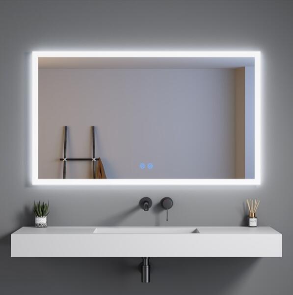 Méret: 120x3,5x70 cm|Fény körös-körül a felületen|Egyszínű led lámpa: 6500K, 2835LED|Szabályozható fényerő (a fény sötétről világosra változhat)|5 mm vastag rézmentes üvegtükör|Érintőérzékelő kapcsoló: világítás és páramentesítő vezérlés|A meghajtó AC220-240V|LED lámpa és meghajtó CE és IP44 minősítéssel|Páramentesítő funkció|Alumínium ház hátu