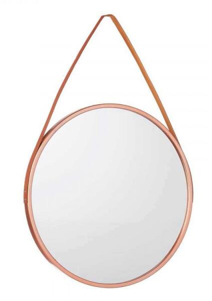 Dobja fel szobáját az elegáns, 45 cm-es átmérőjű ROSEA bronz falitükörrel. A tükör modern és stílusos dizájnnal készült, felakasztható bőrpánttal, amely nemcsak praktikus, hanem esztétikai megjelenést is kölcsönöz. A keret bronz színe meleg és kifinomult színtónusokat hoz a térbe, melyek könnyen kombinálhatók a különböző dizájnstílusokkal. Ez a tükör ideáli