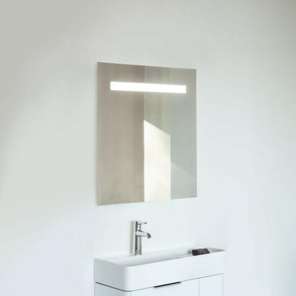 Laufen Leelo keretes tükör 55x80 cm világítással, kapcsoló nélkül H4476219501441Alumíniumkeretbe épített, elektropolírozott tükör Falra szerelés Súly: 7,3 kg Méret: 55x80x3,8 cm Szobai kapcsolóhoz, vezetékes 1 db vízszintes lámpatest a tükörbe integrálva 4 mm-es tükörüveg biztonsági fóliával 4000 Kelvin, IP44, 230V, 50/60 Hz LED fényforrás 6,0W Rögzítő készlette