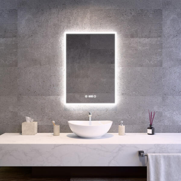 F1 Négyzet alakú csiszolt tükör LED világítással - 90x160 cm, extra fizetéses kiegészítők, most kedvezménnyel és ingyenes kiszállítással.