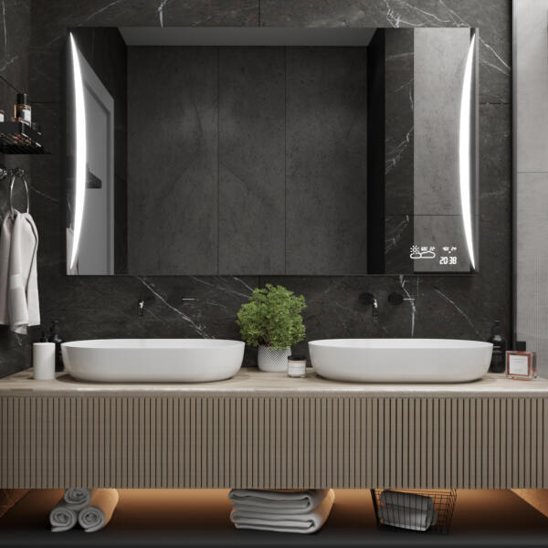 Luxus dizájner LED-es tükör , amely nem csak szépségének és praktikumának köszönhetően varázsolja új térré a fürdőszobáját, hanem különösen a több mint 7 lehetséges kiegészítőnek köszönhetően. : Opcionális LED-es tükörvilágításs Érintésve zérlés Bluetooth hangszóró Tükör fűtés Meteorológiai állomás WIFI-vel Kozmetikai nagyító tükör Üveg polc
