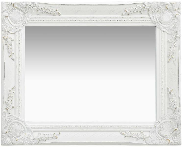 vidaXL fehér barokk stílusú fali tükör 50 x 40 cm Ez a gyönyörűen kialakított fali tükör díszes kerettel klasszikus hangulatot varázsol öltözőjébe. Az antik megjelenésű tükör erős fakerettel rendelkezik, amelyet részletes, dekoratív barokk mintával alakítottak ki. Ezenkívül a ferde éle egyedi megjelenést kölcsönöz a tükörnek. A tükör falra szerelhető a hátold