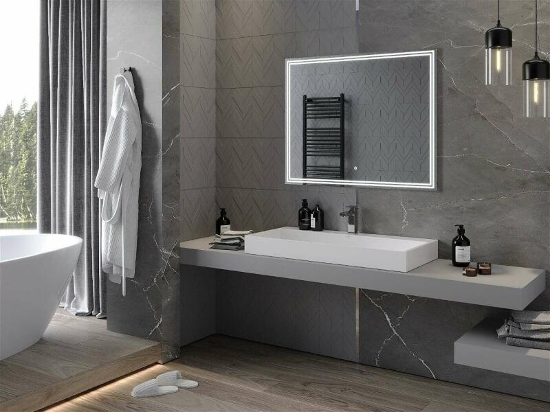 F1 Négyzet alakú csiszolt tükör LED világítással - 110x80 cm, extra fizetéses kiegészítők, most kedvezménnyel és ingyenes kiszállítással.