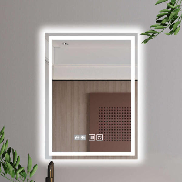 Ezzel a LED világítású tükörrel modern stílust varázsolhat fürdőszobájába, öltözőjébe vagy a ház más helyiségébe. Ez a LED-es fürdőszobai tükör 50 cm széles és 70 cm magas; beszerelés után csak 25 mm távolságra van a faltól. Az Ön preferenciáitól függően a tükör megvilágítását hidegről (7000 K) semlegesre (4500 K) és melegre (3000 K) fehér LED-ekre áll