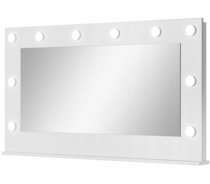 A LED világítással ellátott tükör segít kitölteni az öltözőasztal fölötti helyet. A LED izzókat úgy tervezték, hogy elég egyenletesen és fényesen világítsák meg az arcot. A LED-világítás sokkal kevesebb energiát fogyaszt, mint a hagyományos izzók. A tükör oldalán és felülről vannak elrendezve. A fény színe semleges. A tükör tökéletesen illeszkedik a fürdős