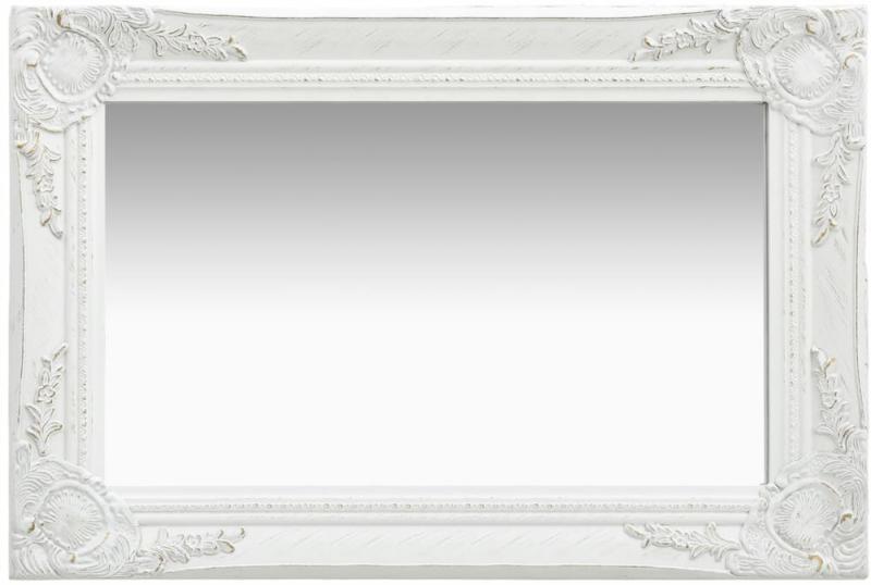 Ez a gyönyörűen kialakított fali tükör díszes kerettel klasszikus hangulatot varázsol öltözőjébe. Ez a gyönyörűen kialakított fali tükör díszes kerettel klasszikus hangulatot varázsol öltözőjébe. Az antik megjelenésű tükör erős fakerettel rendelkezik, amelyet részletes, dekoratív barokk mintával alakítottak ki. Ezenkívül a ferde éle egyedi megjelenést kölcsön