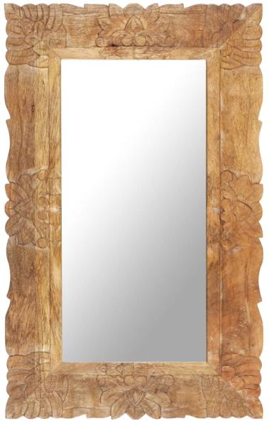 Tömör mangófa tükör 80 x 50 cm Ez a tömör mangófa tükör nem pusztán praktikus hétköznapi tárgy, de otthona mutatós dísze is lesz. A tömör mangófa egy trópusi keményfa, amely elég erős ahhoz, hogy elbírja a ránehezedő súlyt, és tartós is. A tökéletes kivitelezésnek és a fa gyönyörű erezetének köszönhetően minden fatükör különbözik a többitől. A kézzel