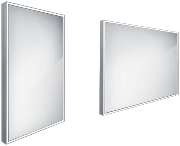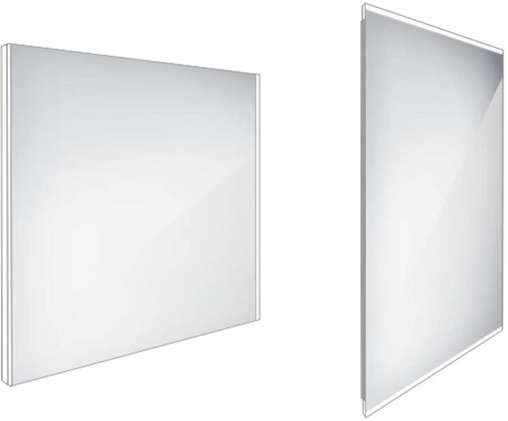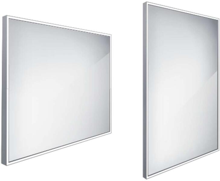 Tükör LED világítással, alumínium keretben anyag alumínium négyzet alakú méret 800 x 700 mm Körös-körül 8 mm-es kerettel borítva legnagyobb fényességű modell a tükör vízszintes és függőleges helyzetben is felszerelhető 5 mm vastag tükörüveg 220-240V csatlakozás védelem IP 44 kapcsoló nélkül csatlakoztatás a tápegységhez és bekapcsolás a helyiségben lévő vil