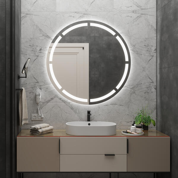 Luxus dizájner LED-es tükör , amely nem csak szépségének és praktikumának köszönhetően varázsolja új térré a fürdőszobáját, hanem különösen a több mint 7 lehetséges kiegészítőnek köszönhetően. : Opcionális LED-es tükörvilágításs Érintésve zérlés Bluetooth hangszóró Tükör fűtés Meteorológiai állomás WIFI-vel Kozmetikai nagyító tükör Üveg polc