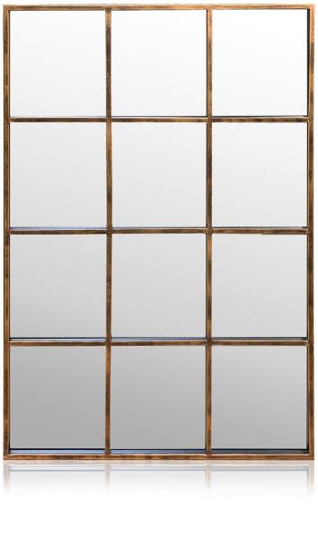 A Casa Chic by blumfeldtSoho fali tüköregy feltűnő designelem vintage francia tükör formában, porszórt fém kerettel. Az összesen 12 osztott tükörrészből álló tükör mélységet és fényt kölcsönöz bármely helyiségnek, valamint kiválóan alkalmas nappaliba, fürdőszobába, hálószobába és előszobába is. A 90 x 60 cm-es méretnek köszönhetően függőlegesen vagy aká