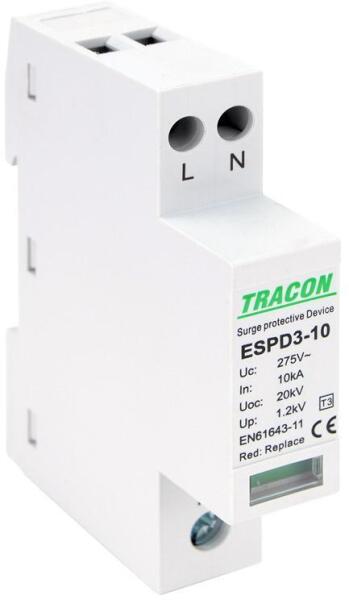 Termék részletekTracon ESPD1+2-50-3P egybeépített T1+T2 AC típusú túlfeszültség levezető