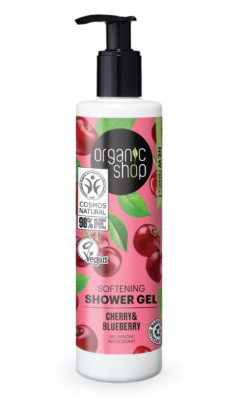 TestápolásOrganic Shop Softening tusfürdő cseresznyével és áfonyával, 280 ml - Egy tusfürdő a selymesebb és puhább bőrért - A bio cseresznyekivonat hidratálja és puhítja a bőrt, finom tapintásúvá, rugalmassá varázsolja azt - A bio áfonyakivonat jótékony hatású anyagokkal visszaállítja a bőr természetes egyensúlyát - Cosmos Natural minősített, vegán natúrkoz-me