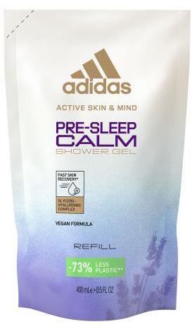 A pihentető levendulaillatú Adidas Pre-Sleep Calm női tusfürdő segít megnyugtatni a testet és az elmét, valamint megkönnyíti az elalvást. Élvezze a kellemes pillanatokat a Pre-Sleep Calm tusfürdővel! a benne levő glicero-hialuron komplexum ápolást és hidratálást biztosít, a levendulás illóolaj nyugtatja az elmét és illatosítja a bőrt, szappan- és szulfátmentes, érzék