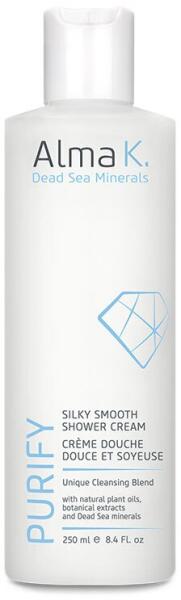 Silky Smooth krémes tusfürdő, Purify, Alma K, 250 ml A napi zuhanyozás még pihentetőbbé válhat a holt-tengeri ásványokkal, olívaolajjal és szőlőmag-kivonattal átitatott, rendkívül gazdag és kiegyensúlyozott krémes tusfürdővel, amely táplálja a bőrt, miközben gyengéden eltávolítja a szennyeződéseket. Selymes és krémes textúrája élénkíti és puhítja a bőrt. F