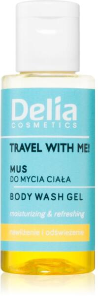 Delia Cosmetics Travel with me, 50 ml, Tusfürdők nőknek, A kényeztető Delia Cosmetics Travel with me tusfürdő gél elengedhetetlenül hozzátartozik a mindennapi higiéniához. Gyengéden, mégis kímélően tisztítja és hidratálja a bőrt a teljes testfelületen. Tulajdonságok: lemossa a bőrt és eltávolítja a szennyeződéseket helyreállítja a bőr komfortérzetét kellemes illat