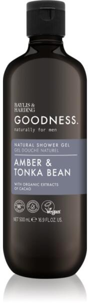 Baylis & Harding Goodness Amber & Tonka Bean, 500 ml, Tusfürdők és szappanok férfiaknak, A minőségi Baylis & Harding Goodness Amber & Tonka Bean tusfürdő az elengedhetetlen mindennapi higiéniát páratlan frissítő élménnyé teszi. Tulajdonságok: kímélően tisztítja a test teljes felületét vitalizálja a bőrt bársonyosan finommá és selymessé teszi a bőrt has