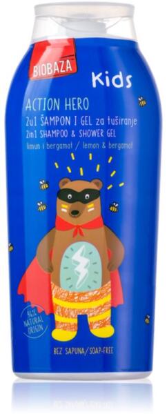 BIOBAZA Action Hero, 250 ml, Samponok gyermekeknek, A kényeztető BIOBAZA Action Hero tusfürdő gél elengedhetetlenül hozzátartozik a mindennapi higiéniához. Gyengéden, mégis kímélően tisztítja és hidratálja a bőrt a teljes testfelületen. Tulajdonságok: lemossa a bőrt és eltávolítja a szennyeződéseket ápolja az arcbőrt, a bőrt és a hajat Összetétel: nem tartalmaz SLS-
