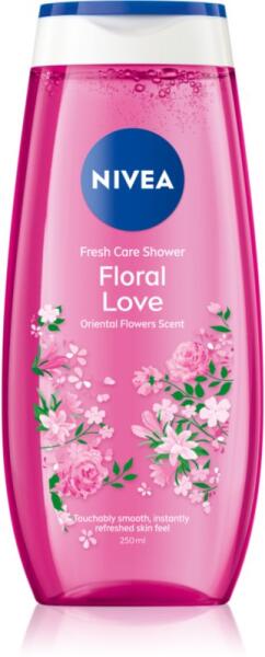 NIVEA Floral Love, 250 ml, Tusfürdők nőknek, A kényeztető NIVEA Floral Love tusfürdő gél elengedhetetlenül hozzátartozik a mindennapi higiéniához. Gyengéden, mégis kímélően tisztítja és hidratálja a bőrt a teljes testfelületen. Tulajdonságok: lemossa a bőrt és eltávolítja a szennyeződéseket kellemesen frissít táplálja és ápolja a bőrt bársonyosan finommá és se