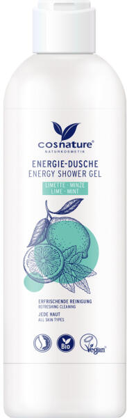 Cosnature tusfürdő gél lime-mal és mentával 250 ml Cosnature Tusfürdő gél lime-mal és mentával 250 ml. Minden bőrtípusra. Energetizál, tengeri ásványokkal stimulálja és vitalizálja a bőrt. Enyhe formula, mely nyugtató tisztítást biztosít. Bio lime-kivonattal kellemes, puha bőrérzetet, revitalizáló, friss érzést kölcsönöz. Vegán. Használat: Habosítsa fel a nedves