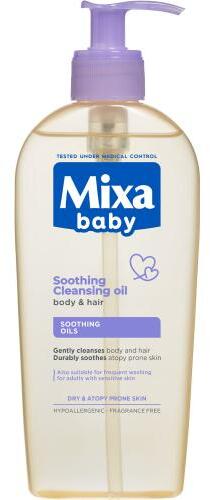 A Mixa Atopiance Soothing Cleansing Oil kifejezetten száraz és érzékeny, atópiára hajlamos bőrre kifejlesztett nyugtató hatású, tisztító olaj. Ez a semleges pH-értékű olaj gyengéden tisztítja a bőrt és a hajat, miközben erősíti a bőr védőrétegét.