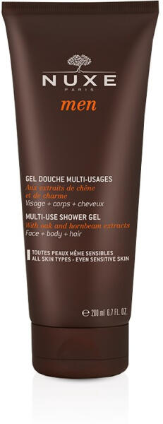A Nuxe Men többfunkciós férfi tusfürdő és sampon szappanmentes formulája nem szárítja a bőrt, esszenciális olajainak koktélja (cédrus, pacsuli, geránium, vetiver) energizáló hatású. A tölgy- és gyertyánfa, valamint a kókusszármazékok lágyan és tökéletesen megtisztítják az arcot, a testet és a hajat. A Nuxe Men többfunkciós férfi tusfürdő és sampon szappanmentes