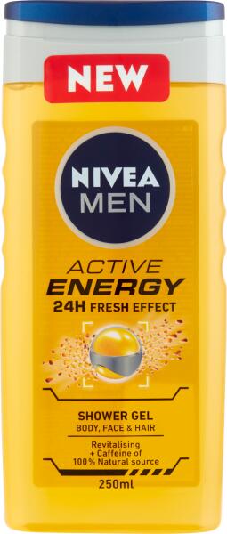 Nivea Men Active Energy Tusfürdő 250ml A Nivea Men Active Energy Tusfürdő energizáló hatásával segíti a friss és lendületes napindítást. Ez a tusfürdő kifejezetten férfiak számára készült, hogy bőrüket tisztává, hidratálttá és élettel telivé varázsolja. Gyengéd, mégis hatékony formulája ápolja a bőrt, miközben revitalizáló illatával serkenti az érzékeket.